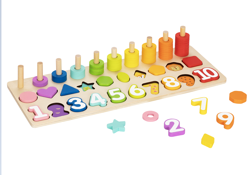 Brinquedo de Madeira - Formas Geométricas, Números, discos de encaixar e empilhar