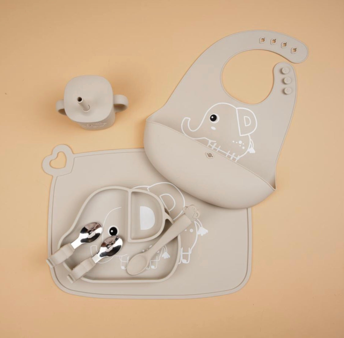 Conjunto Refeição Para Bebé - ELEFANTE CINZA CLARO